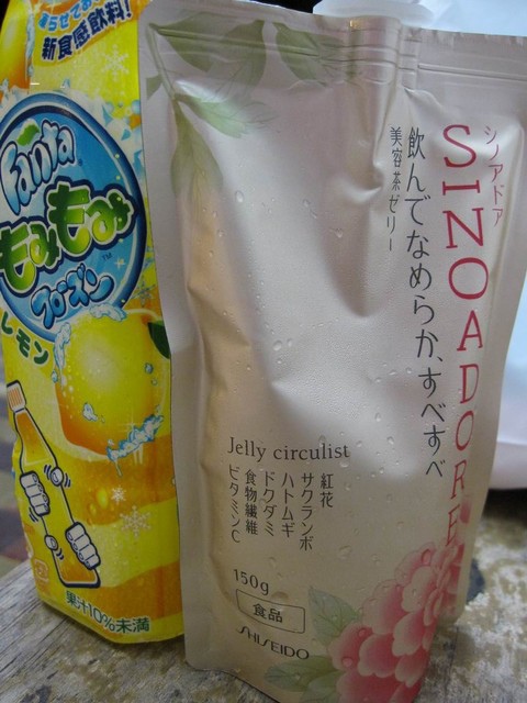 裡面有像蒟蒻果凍之類的東西,標榜有美肌的功能小球形容說很像在嗑藥的FU